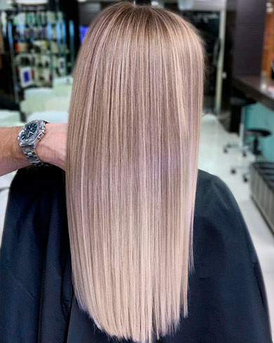 - Мастер проводит диагностику волос, подбирает продукты и формулы для осветления с обязательным тонированием.
