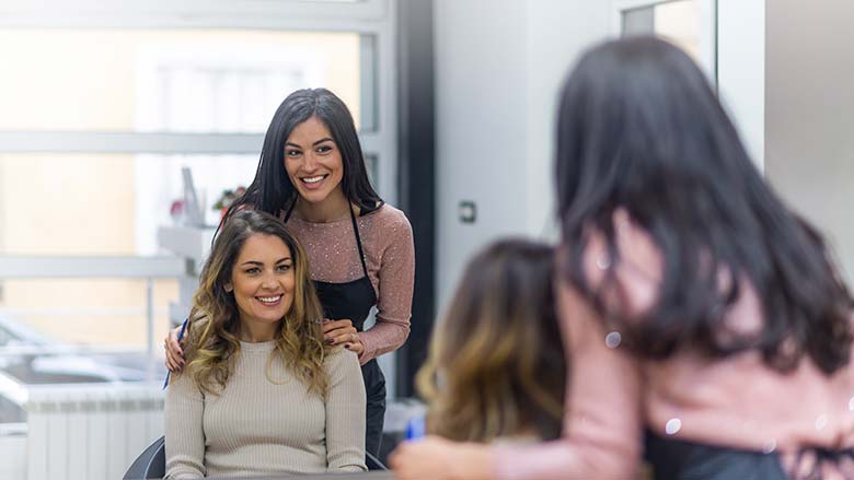 Встретив клиента улыбкой, пригласите его к креслу и усадите, развернув лицом к зеркалу.