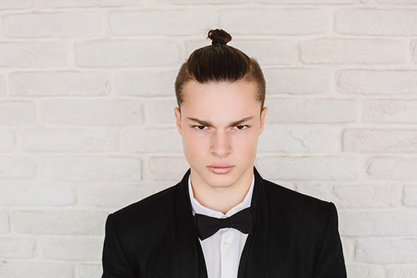 Для отличников и настоящих юных самураев стилисты придумали современную интерпретацию удлиненного андерката. Стрижка скрывает виски и затылок мягким коротким ежиком. Верхние пряди укладывают с объемом от лица или стягивают в плотный пучок.