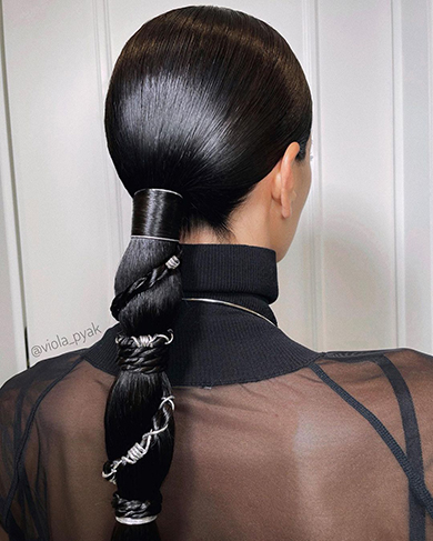Элегантно, просто и динамично. Не забудьте замаскировать резинку одной из прядей: оберните ее вокруг основания хвоста и спрячьте кончик, протянув его шпилькой под резинку.