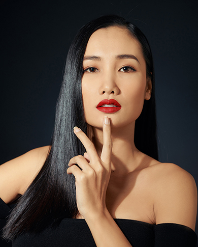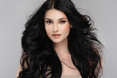 - усиливается акцент на чертах внешности, их выразительности, длинные черные волосы (если они прямые) визуально вытягивают лицо, стройнят;