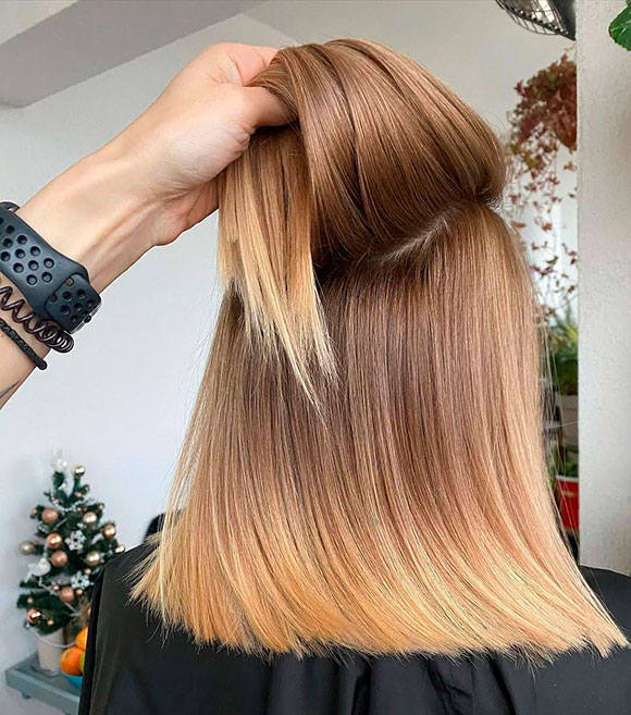 Светлый теплый цвет волос на 9–11-м уровнях тона — прекрасный выбор, если нужно смягчить образ и добавить в него аккорд безграничной нежности.
