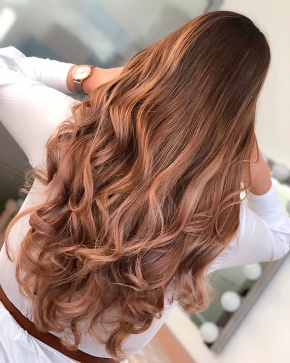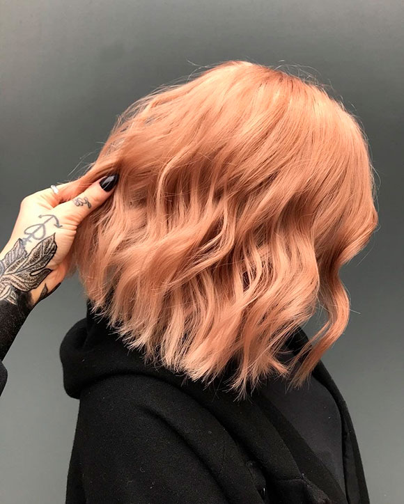 Теплые тона волос имеют право быть креативными. Обратите внимание на персиковые блонды (пастельные розово-рыжие) и rose gold.