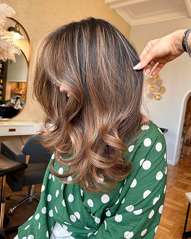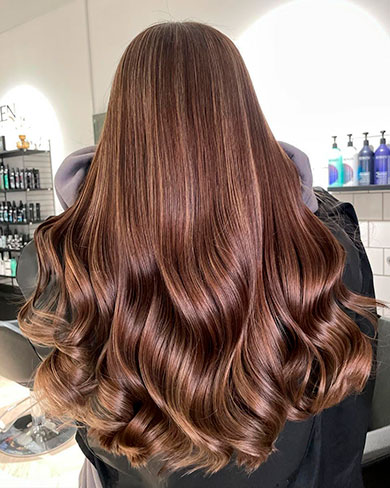 Мокка с вкусным шоколадным, золотым и медным нюансами. Обсудите со своим колористом, как усовершенствовать цвет дополнительными тонами — пусть ваш мокка будет уникальным.