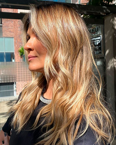 Самый вкусный нюанс палитры — медовый блонд. Прекрасно смотрится в балаяже на вьющихся локонах и в однотонном окрашивании на прямых волосах.