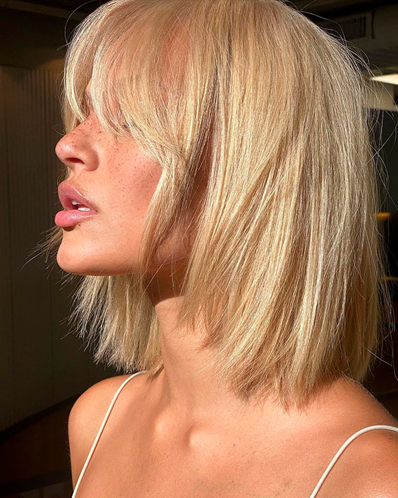 На волосы с обильной сединой чудесно ляжет песочный тотал блонд, проблем с отрастанием точно не возникнет. Так можно постепенно отрастить натуральную седину, если вы уже размышляли над этим смелым шагом.