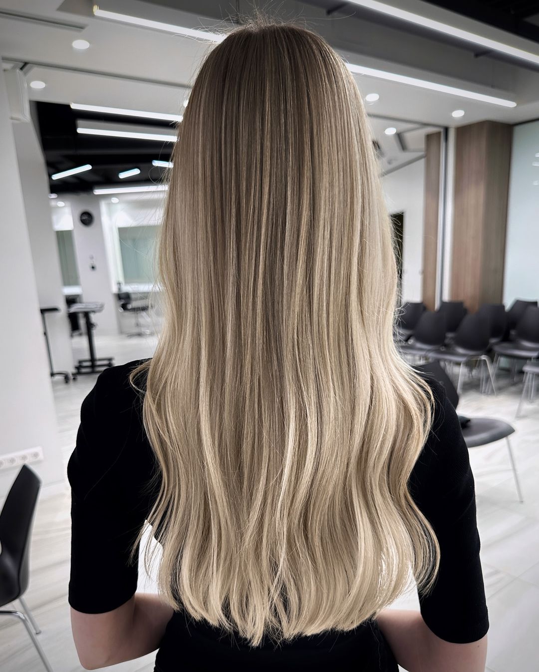 Преимущество балаяжа и 4D-блонда на длинных волосах в том, что они рассветляют нежно, без драматичных контрастов, и позволяют экспериментировать с оттенками: от персиково-медных до розовых нюансов.