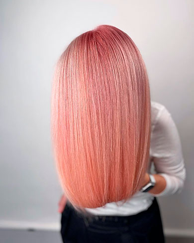 - В беседе с клиентом выбирает оттенок — готовый (от глубокого пепельного шатена до перламутрового розового блонда) или состоящий из нескольких оттенков палитры.