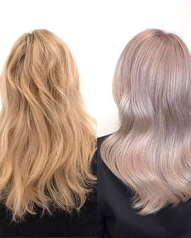 А выше — примеры тонирования с кондиционерами ColorBalm от Biolage. Если оттенок подобран правильно и вы строго следуете инструкции, всего за 10 минут можно стать счастливой обладательницей прядей цвета лаванды или, к примеру, утонченного серебристого блонда.