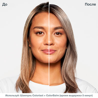 - Тщательно смываем. Завершать процедуру маской или обычным кондиционером не нужно, кондиционеры ColorBalm берут все на себя: и тонируют, и увлажняют волосы.