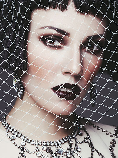 Стильный образ, точнее, стилизованный в эстетике конца XIX — начала XX века. Фасон платья тоже желательно позаимствовать из прошлого. Ободок тут призван не столько удерживать прическу на каре в рамках приличий, сколько поддержать имиджем невесты общий антураж необычной свадьбы — бохо, винтаж, woodland (привет всем эльфам!) или в современном минималистичном оформлении.