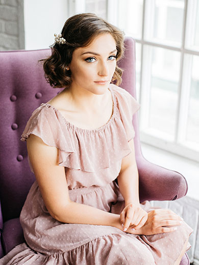 Стилисты предлагают сосредоточиться на объеме и текстуре, за счет чего волосы уже выглядят интересно. На короткой длине без проблем получится сделать тонкие французские косички на висках. Ретро в духе 20-х годов прошлого века с украшениями в стиле ар-деко или ар-нуво станут идеальным дополнением и для платья с высокой талией, и для наряда невесты с корсетом.