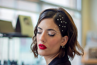 Теперь взбиваем локоны руками и минималистично наносим лак-спрей эластичной фиксации Vavoom! от Matrix. Праздничная прическа готова! Причем она будет хорошо смотреться с чем угодно: с элегантным брючным костюмом, платьем А-образной формы или платьем-футляром.