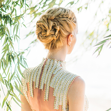 Немного сложнее с пучком на длинных волосах — своими руками event-прическу сделать вряд ли получится. Начните с классических пучков и постепенно переходите к пучкам на основе кос. Например, можно заплести французскую косичку от основания шеи вверх и собрать на затылке плотный узел.