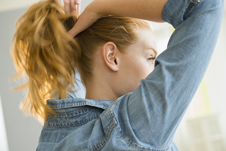 Сегодня — здесь, завтра — там. Постоянное натяжение на определенных участках волос рано или поздно приведет к их критическому повреждению. Поэтому старайтесь менять положение пучка на голове, чтобы распределить нагрузку равномерно по всей поверхности волос.