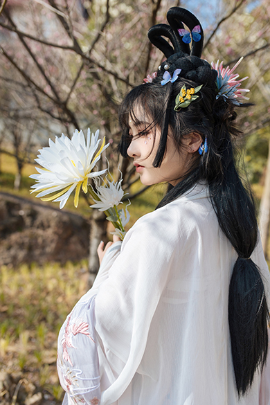 Так появились китайские женские прически, обычно высокие, открывающие шею, с плетеными пучками, гребнями, тонкими косами, гладкими узлами и популярным аксессуаром — изысканно вырезанной шпилькой. Мужчины предпочитали высокие пучки и полупучки с украшением в виде круглой заколки (гуань) и шпильки для фиксации укладки.