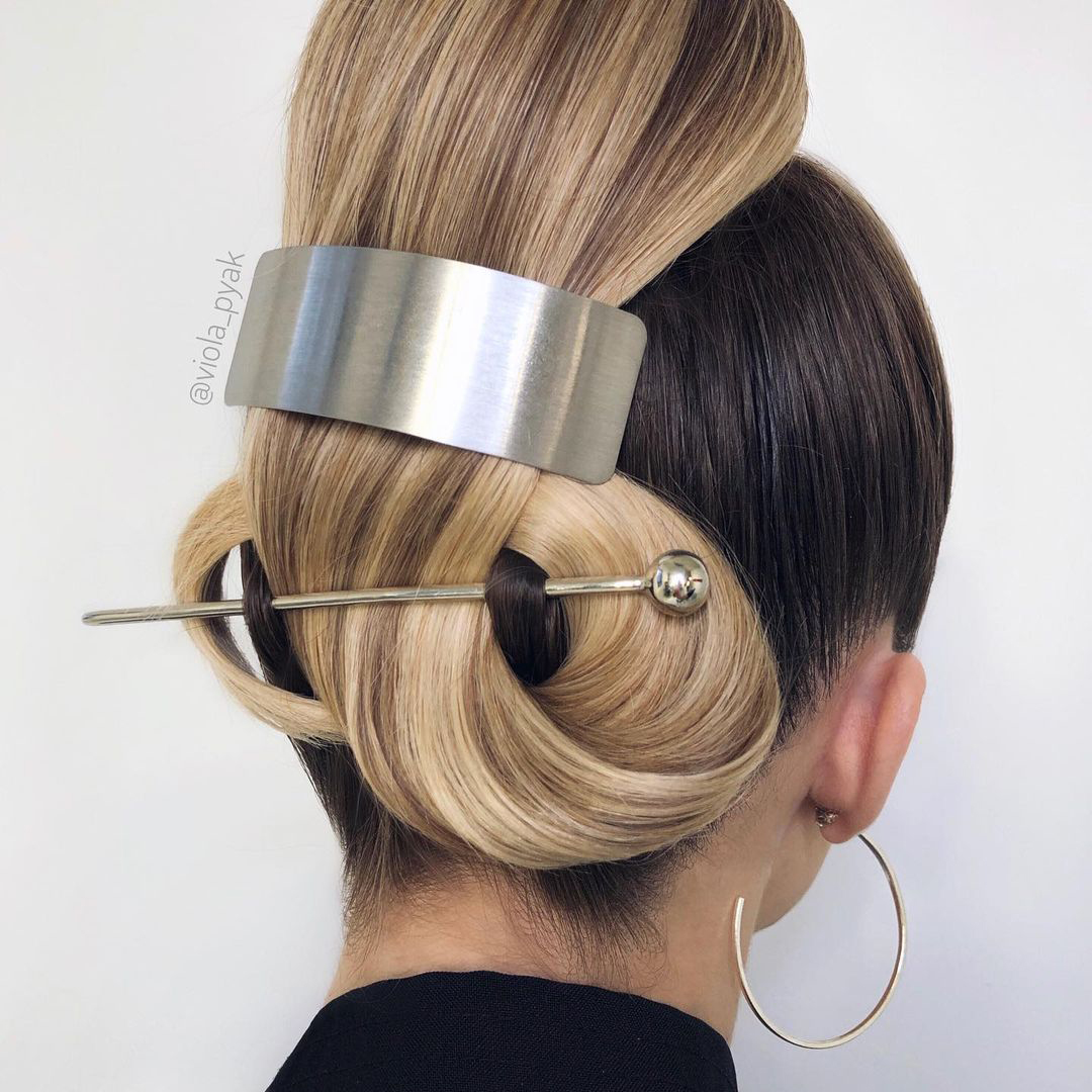 Привлечем положительные вибрации китайским пучком «дракон» — очень вольной, но красивой версией взбитого узла эпохи Тан с сильным влиянием текстурных укладок 30–40-х годов XX века.