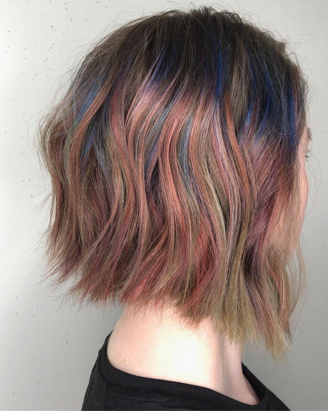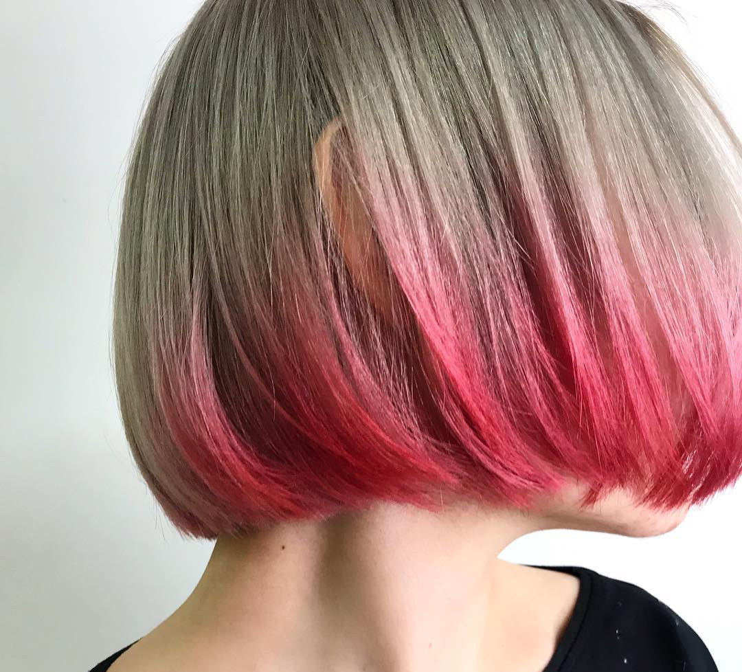 - Яркое окрашивание. Синие брейды и малиновая челка — почему бы и нет. Стильный ч/б в духе dead inside — это ваш мастер тоже умеет. Или цветные блоки, painted hair — то, что подходит, нравится и, самое главное, с удовольствием носится клиентом.