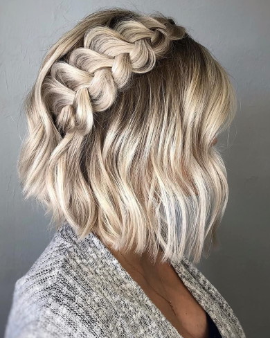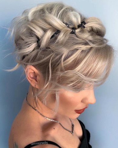 Любая коса требует объема и текстуры. Как сделать объемную укладку на средних волосах с плетением: слегка вытягивайте пряди из косы и сразу фиксируйте сухим спреем.