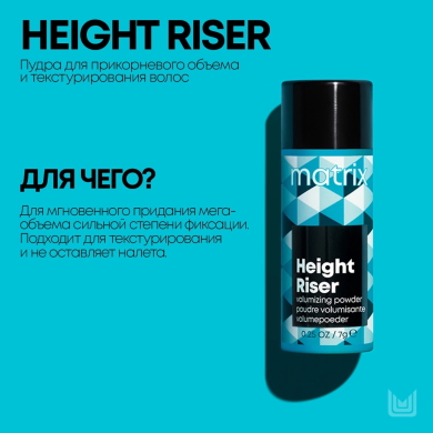 Height Riser от Matrix. Мгновенный результат — объем с сильной степенью фиксации. Настолько сильной, что вернуть пышность волосам можно даже на следующий день, просто взбив их руками у корней. Такая пудра, кстати, подойдет для укладки с косичками, чтобы они смотрелись объемнее.