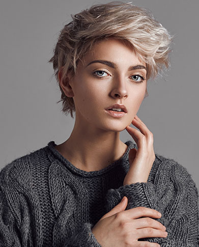 Благодаря текстурирующему спрею прямые негустые волосы в короткой стрижке с легкостью ложатся против направления роста, отлично держат объем и выглядят воздушными.