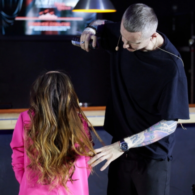 Спрей Tecni.Art Pli тоже термоактивный — его свойства полностью раскрываются во время укладки феном и круглой щеткой.