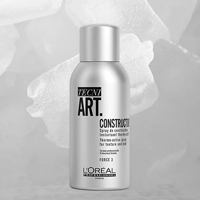 Термоактивный текстурирующий спрей Constructor подходит для создания объема на волосах и защищает от высоких температур стайлеров как термозащитное средство.