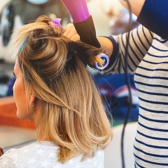 Для объема и гладкости понадобится круглая щетка большого диаметра и мощный фен. Укладывая каре лесенкой с челкой на брашинг, подкручивайте пряди вокруг лица по направлению к себе.