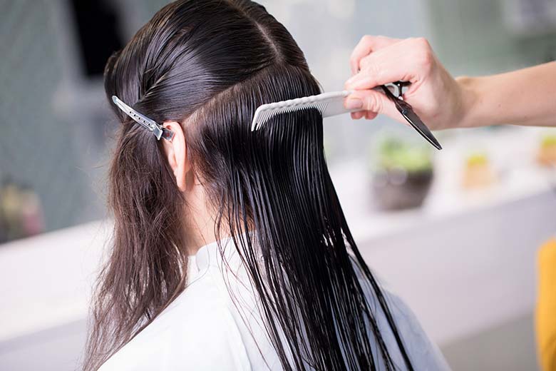 - Сначала нужно помыть голову с полным циклом ухода по типу волос. С чистыми, влажными и гладкими прядями удобнее работать.