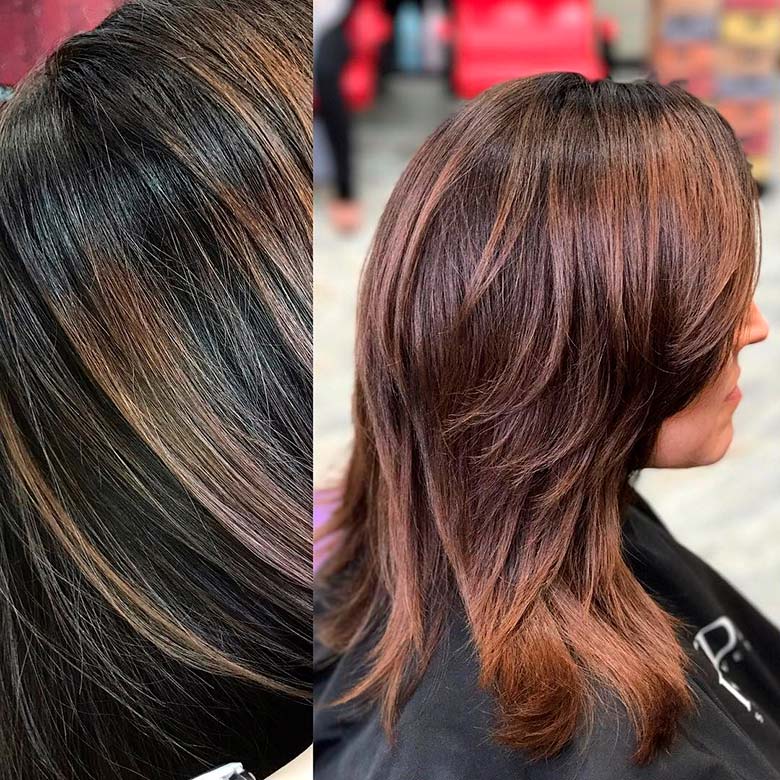 Можно придать каскаду изюминку глубокой филировкой и приблизить пропорции к модной стрижке шегги. Или остановиться на легкой филировке, образ получится спокойным и деловым.