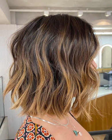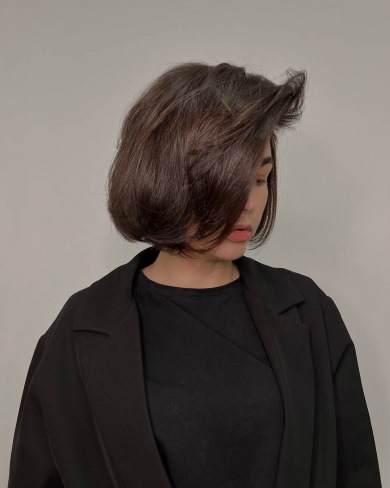 В последние годы мы привыкли видеть боб-каре на объемных волосах — легких, тонких и обязательно вьющихся. Но эта стрижка дает естественную пышность и на негустых прямых. Укладка потребуется регулярная, зато простая: подкрутить пряди на браш, внести немного текстуры сухим спреем, глиной или стайлингом-тянучкой.