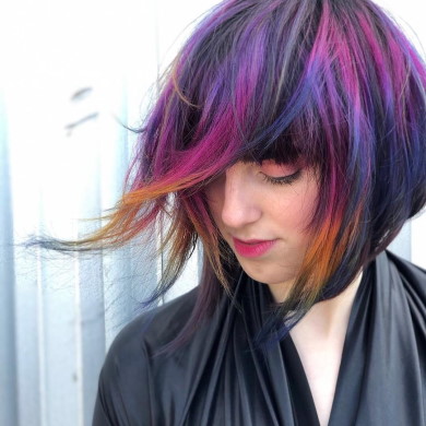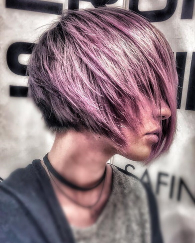 В основе асимметричного каре лежит классическая стрижка боб, асимметрия достигается перепадами длины и работой с пропорциями челки. Плавный силуэт боба в корейском стиле снимает «тяжесть» с лишенных объема густых волос и приподнимает тонкие негустые. Длинное каре с косым пробором и укороченным акцентным виском выбирают девушки с вьющимися локонами и поклонницы укладки с плойкой.