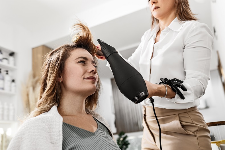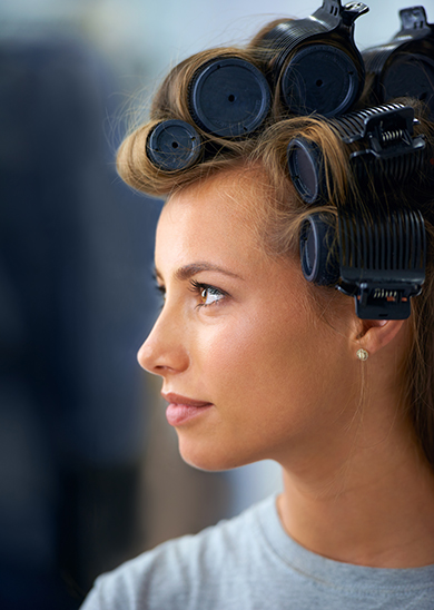 - Продувайте бигуди феном в горячем режиме сверху и снизу до тех пор, пока волосы челки не высохнут. В случае неприятных ощущений от перегрева кожи головы на несколько минут отложите фен.