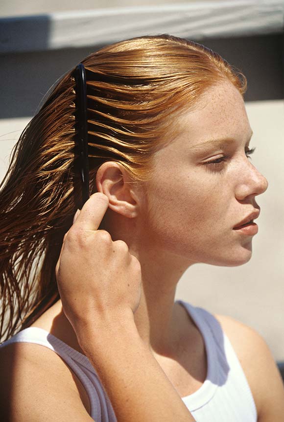 Советуют эксперты: несмываемый крем из гаммы Metal Detox от L’Oréal Professionnel защищает волосы (и цвет окрашивания) не только от солнца. Его формула дает надежную защиту от высоких температур стайлеров и нейтрализует негативные последствия от контакта волос с жесткой водопроводной водой, насыщенной микрочастицами меди.
